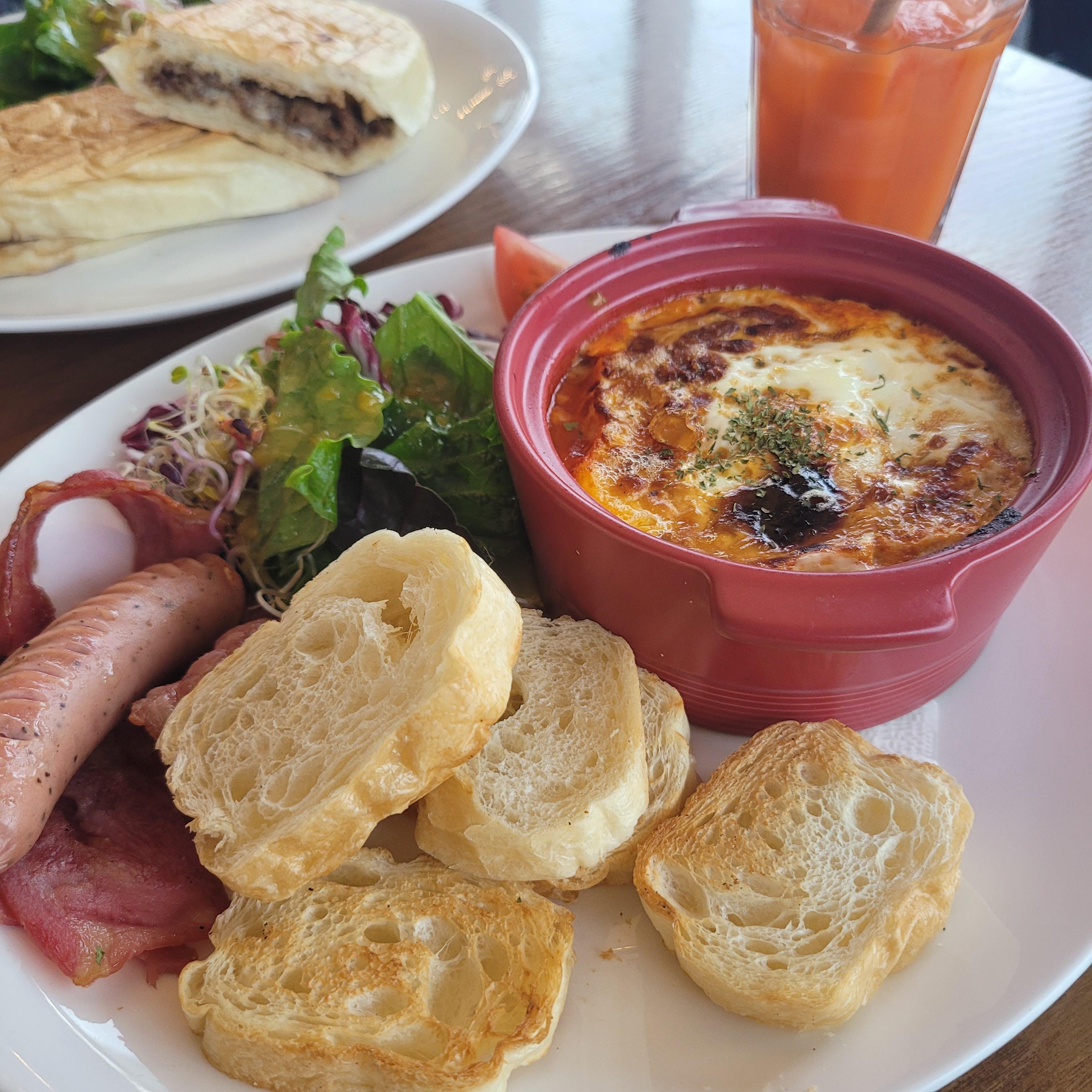 브런치 메뉴를 주문했는데 40분 정도 걸린다고 해서 빵을 먼저 먹기로 했습니다. 다행히 음료를 먼저 주셔서 빵과 함께 먹을 수 있었습니다.